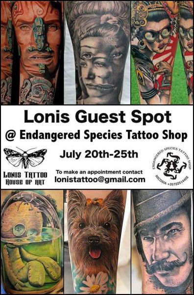 Leonidas from Lonis Tattoo Studio will head back to Cyprus and do a guest spot at Endangered Speciestattoo from 20/7/15 until 25/7/15.