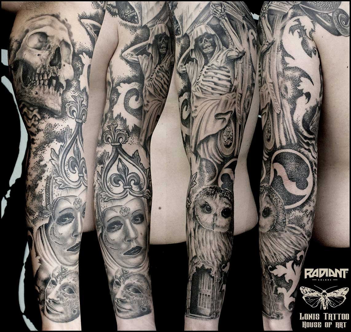 Leonidas Skiadas (Lonis) was born and raised in Athens.He started drawing at a very young age. His professional career started as the go to guy for quality airbrushing as well as making murals. Later on he continued as assistant scenographer where he worked on many advertising, theatrical and movie productions. His paintings have been showcased in a number of personal exhibitions in galleries. He has been tattooing since 1999 and then he opened his own tattoo studio back in 2009.He has participated in a lot of International Tattoo Conventions and got awards in various categories. His tattoo style spans a wide range from Realistic, Traditional, Asian tattoo while incorporating in each design his unique touch.